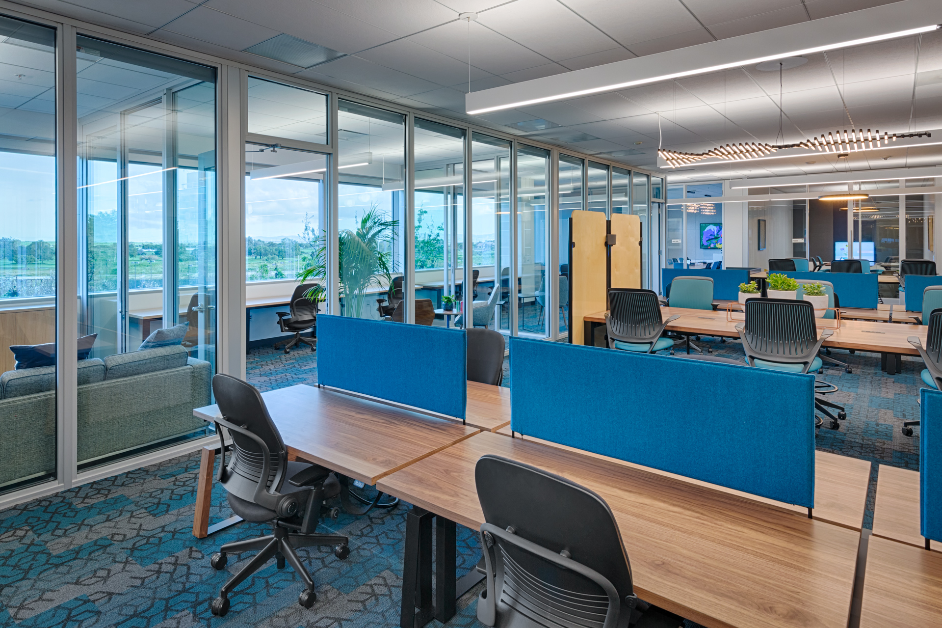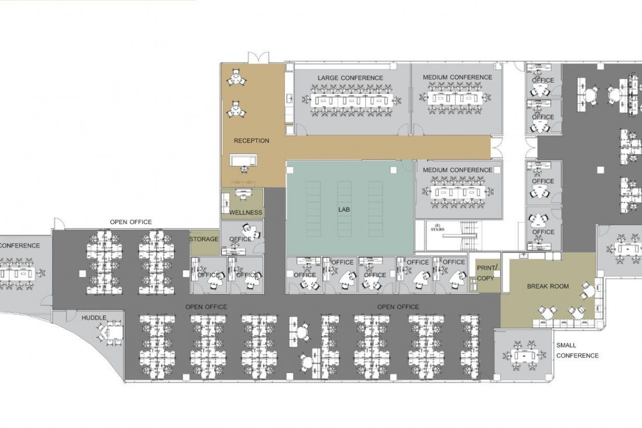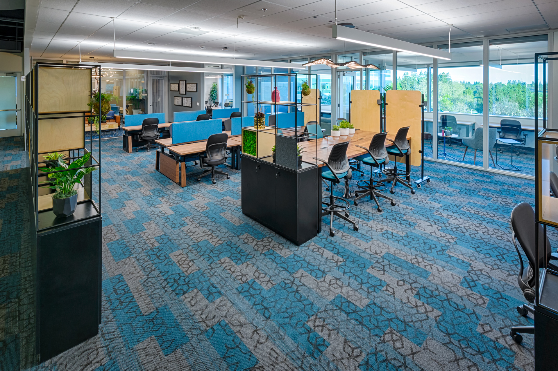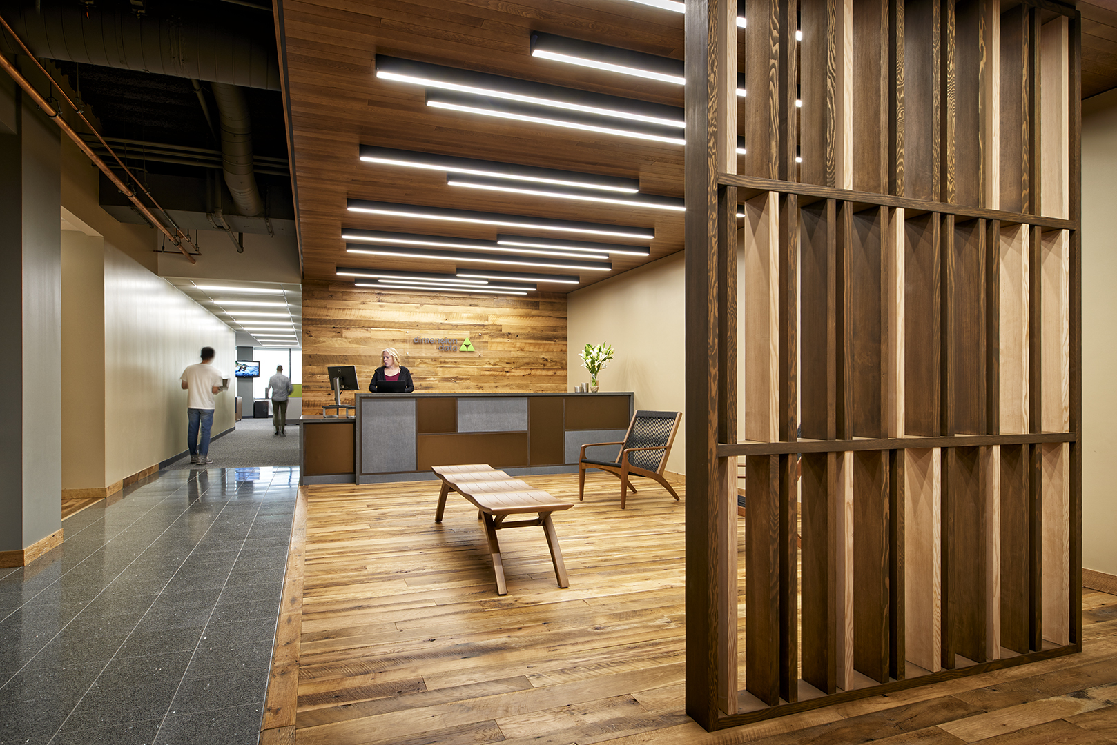 A renovation of a tech company executive suite to be organized based on new team structures and ways of working together. Creating shared offices, different types of conference rooms and casual space, plus using furniture and architectural elements to screen off areas for more privacy.