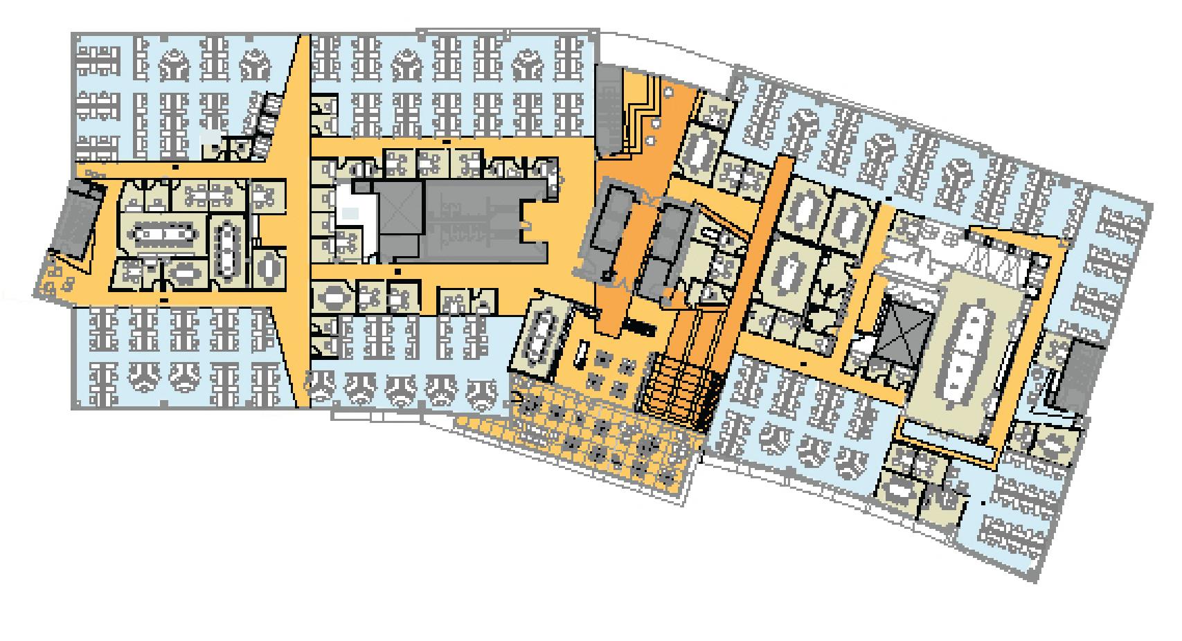 ALZA, Google Search HQ, a renovation of the existing offices to re-organize and create workspaces that work with growth and changes in their business. In addition, using the concept of the major cities where "search" has regional offices, where every 8 floors are based on one of the significant regional offices; London, Toyko, etc