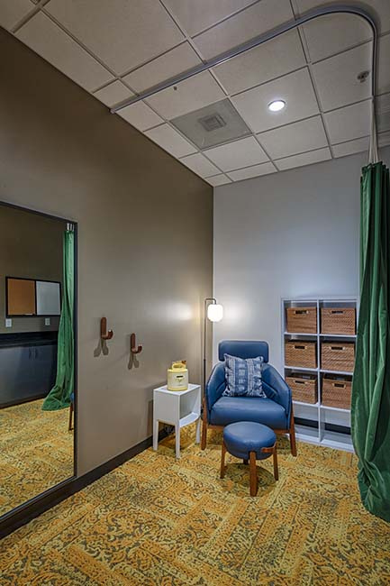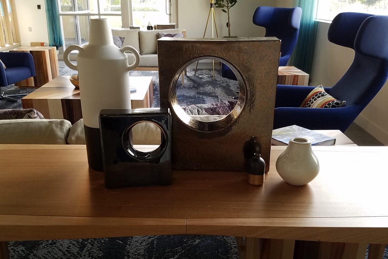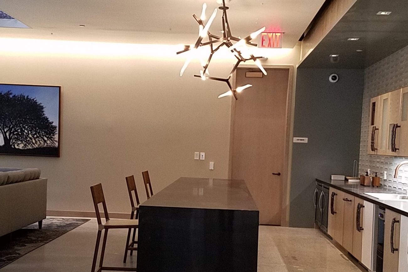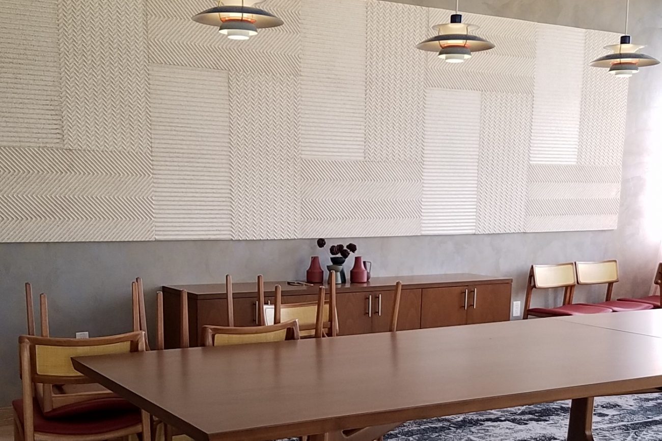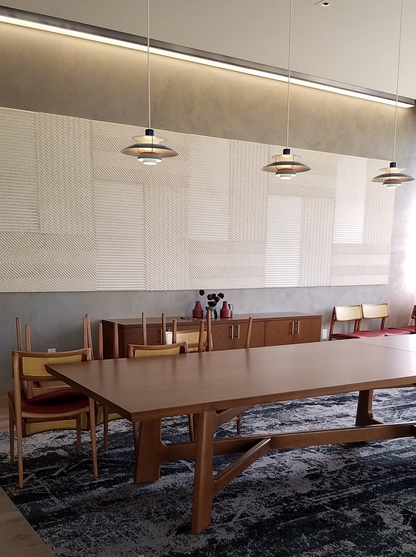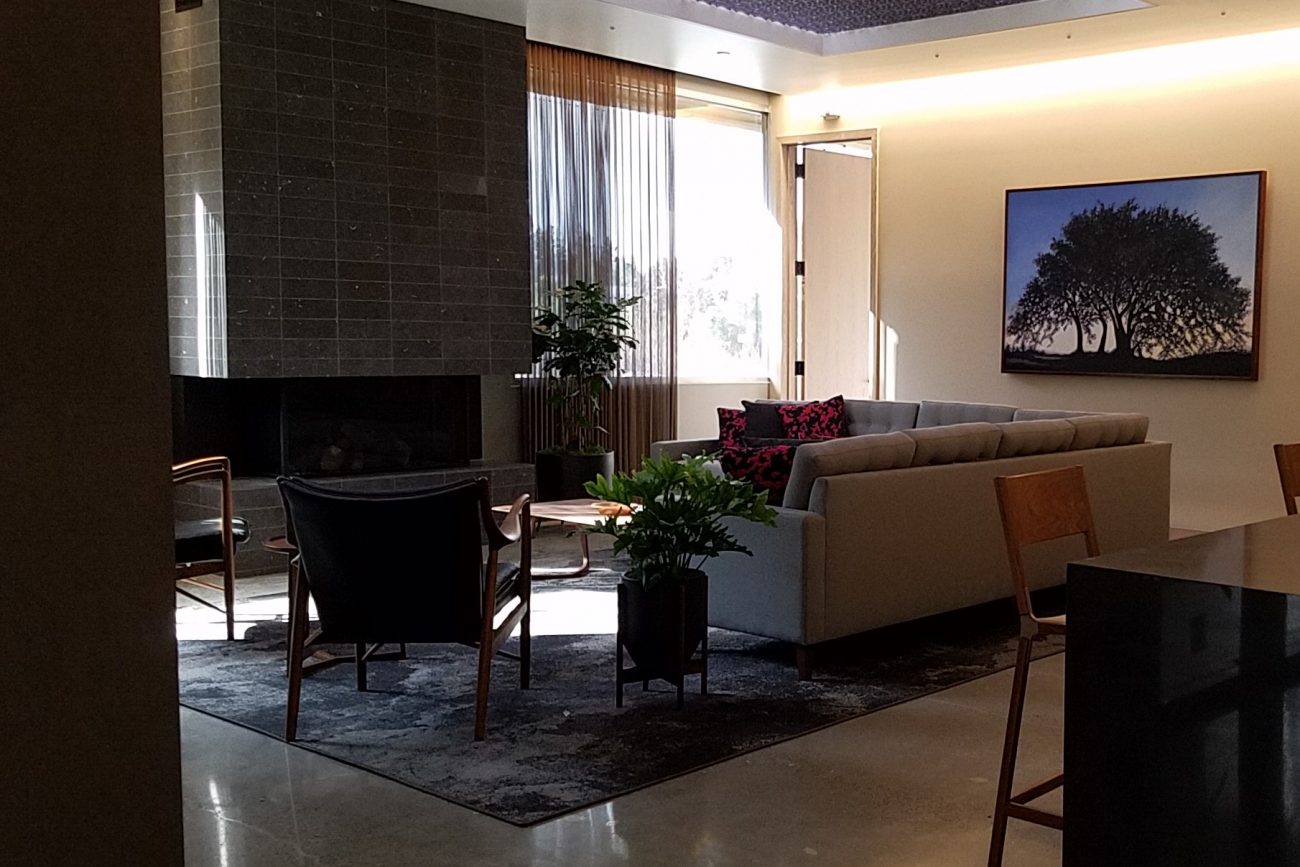 An executive suite for the CEO of a major tech company that is located away from the company’s main campus to provide a private and quiet space for working and entertainment plus quarterly board meetings. The inspiration for the space was the view of the rolling hills visible from the office and balcony, and the changes that the seasons bring to the hills of Northern California. The space had an executive office with an adjacent transition [Office1] room for emergencies, plus an adjacent large conference room, a phone room, and in the front of the office, a private shower and bathroom. This all flowed into a lounge and micro kitchen for providing catering for the large conference room. A fireplace in the lounge gives the space an intimate, residential feel to the space. There is an adjacent security office, with restrooms for guests. Next to this space is a “greenroom/boardroom” that is used for quarterly board of directors’ meetings with an adjacent dining room, lounge area for entertainment and a catering kitchen.