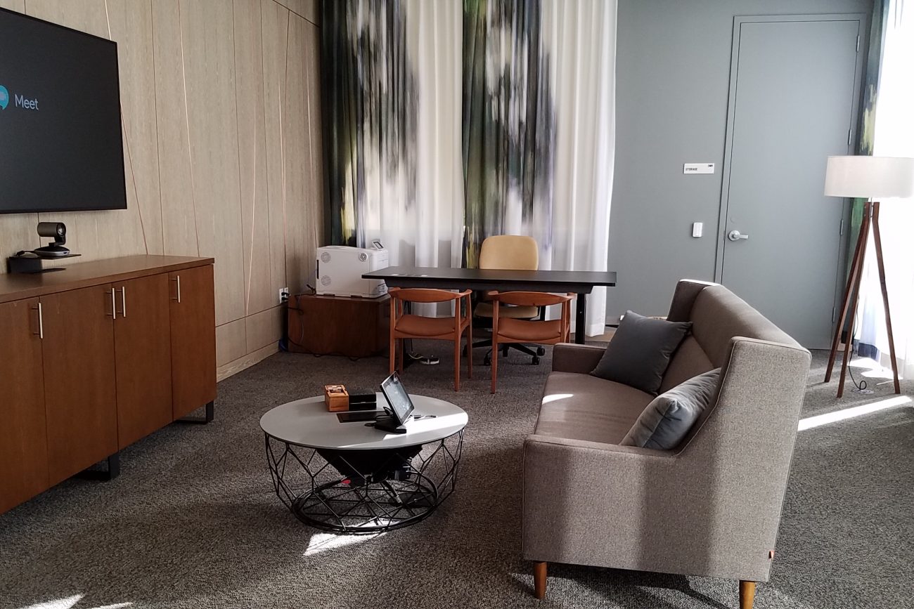 An information technology company that manages IT support. This Bay Area office is the regional head office with a showroom and conference center to meet and show potential clients their product and services. The client desired that the showroom have a local, natural, and hospitality-like feel.