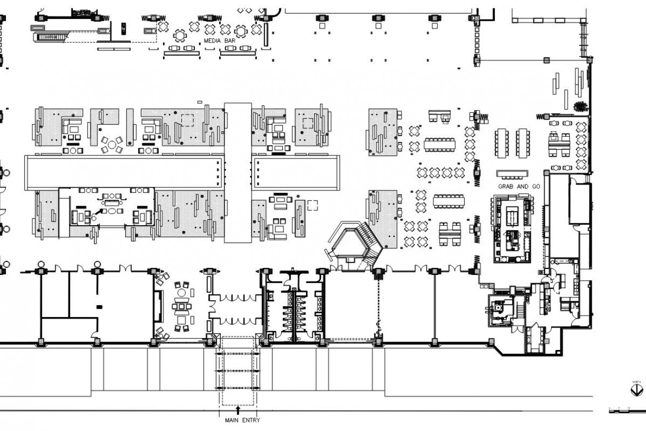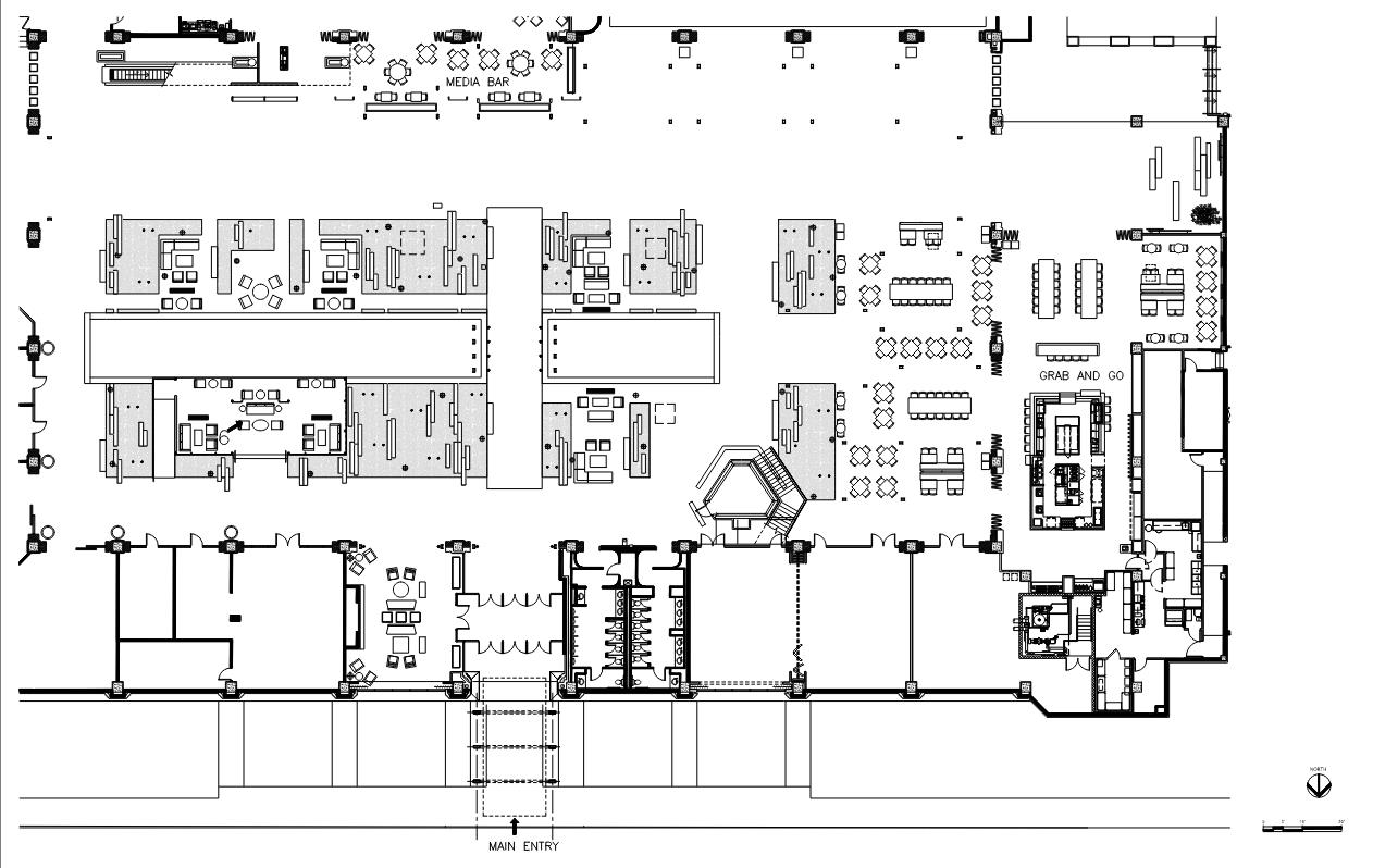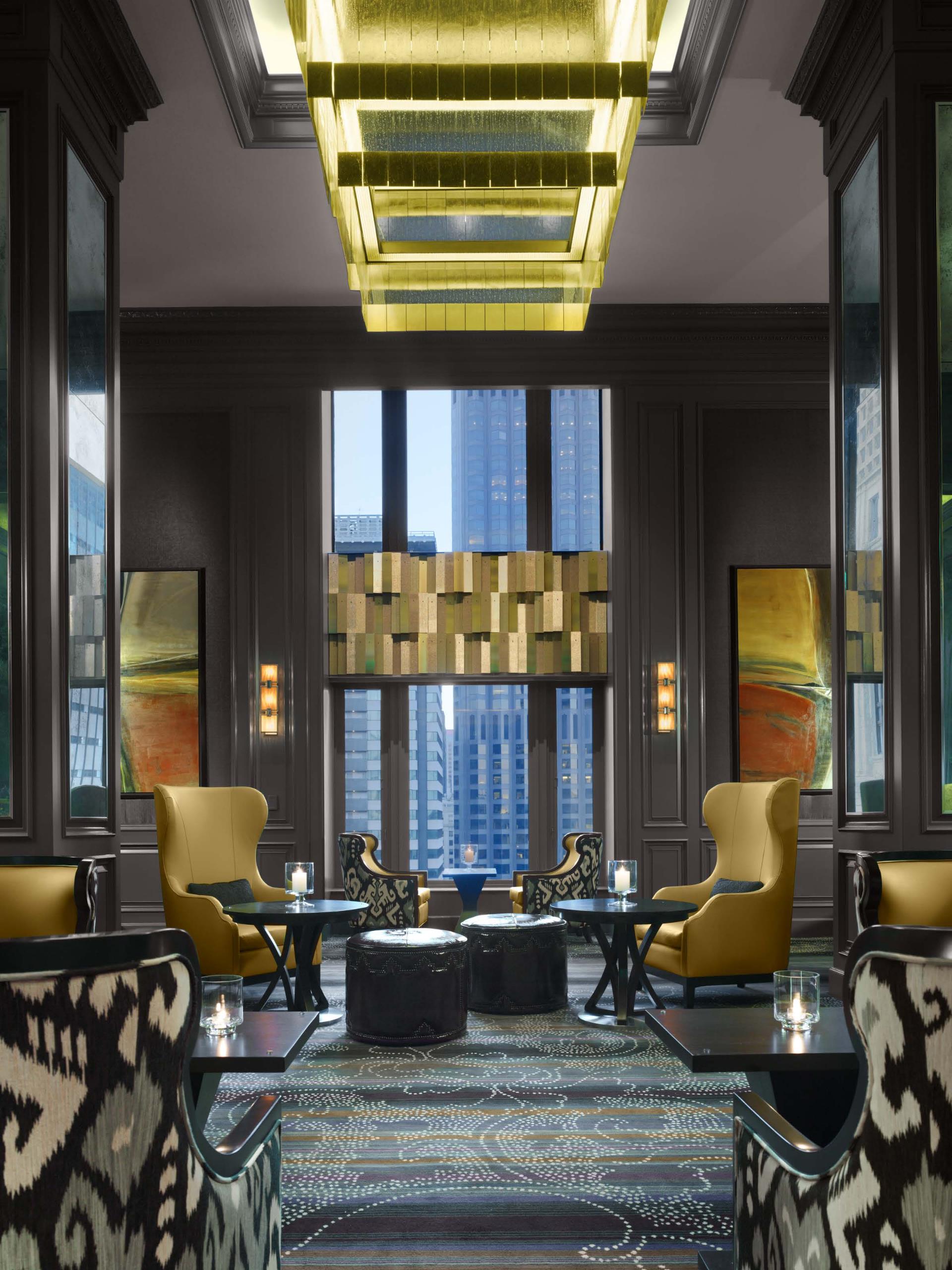 A family-owned, large convention hotel renovation to accommodate the new downtown conference center. The lobby and public area inspiration was based on the family’s personal large Asian art collection that is not a part of their downtown museum collection. The large Atrium courtyard area was centered with a diagonal Zen fountain surrounded by an indoor garden, with seating and lounge areas for breakout space for convention visitors to casually gather and meet. The whole garden and fountain are positioned beneath a 15-story Atrium and skylight that was a special commissioned art installation piece. The project contains a “Grab and Go” food venue that can be transformed from serving quick breakfast offerings to an evening wine bar.