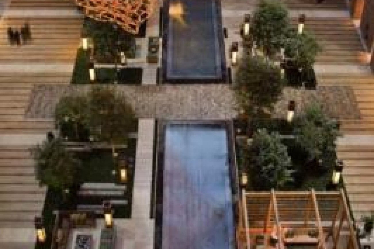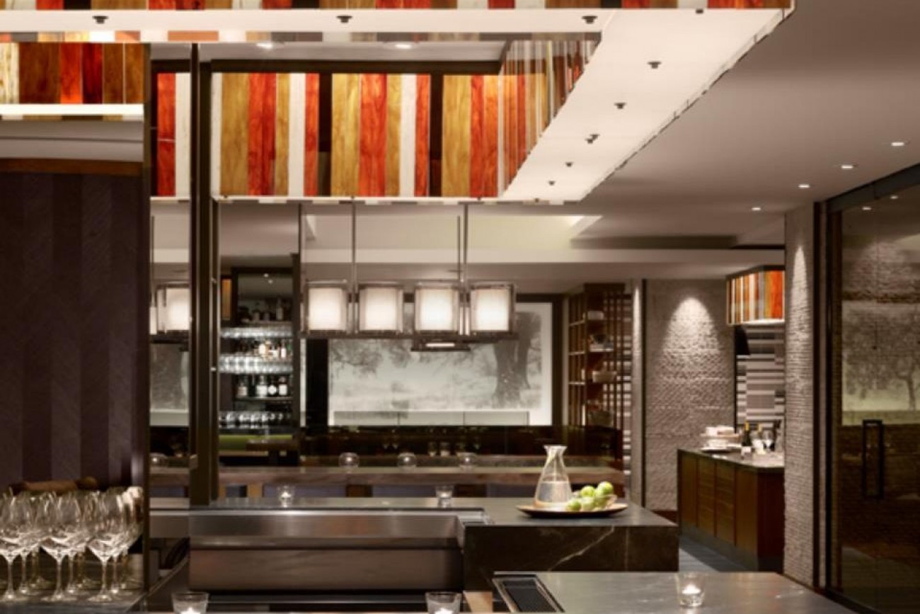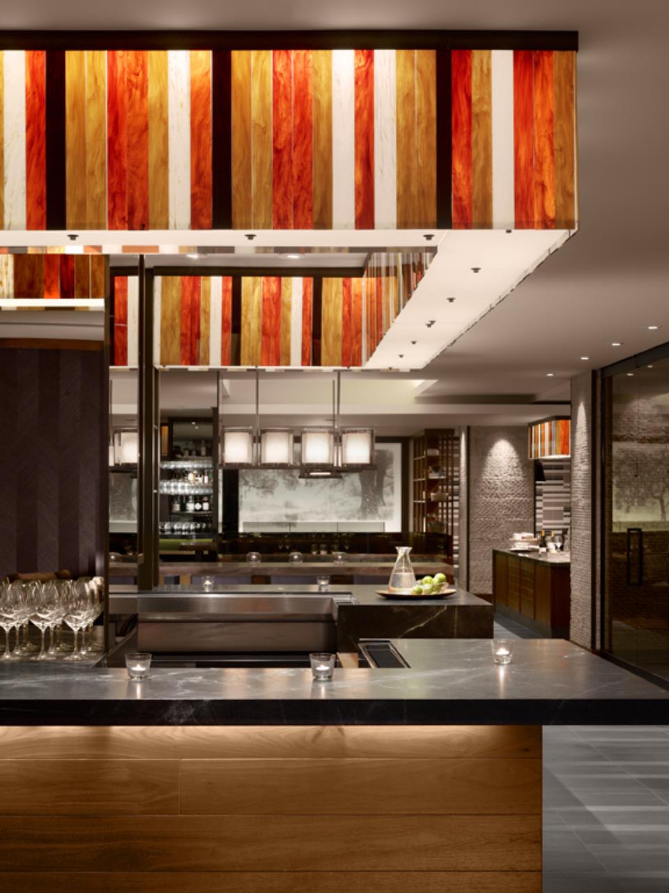 Rosso, the hotel’s formal Italian restaurant, was updated to be anchored with a center antipasto bar surrounded by different dining room areas, the family area and man’s dining area as required by local traditions, and a special larger dining table for group and events. The look and feel of the restaurant draws inspiration from the city of Rome and it’s renown as the center of the Italian film world.