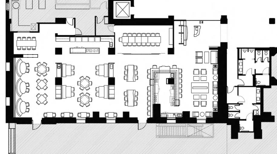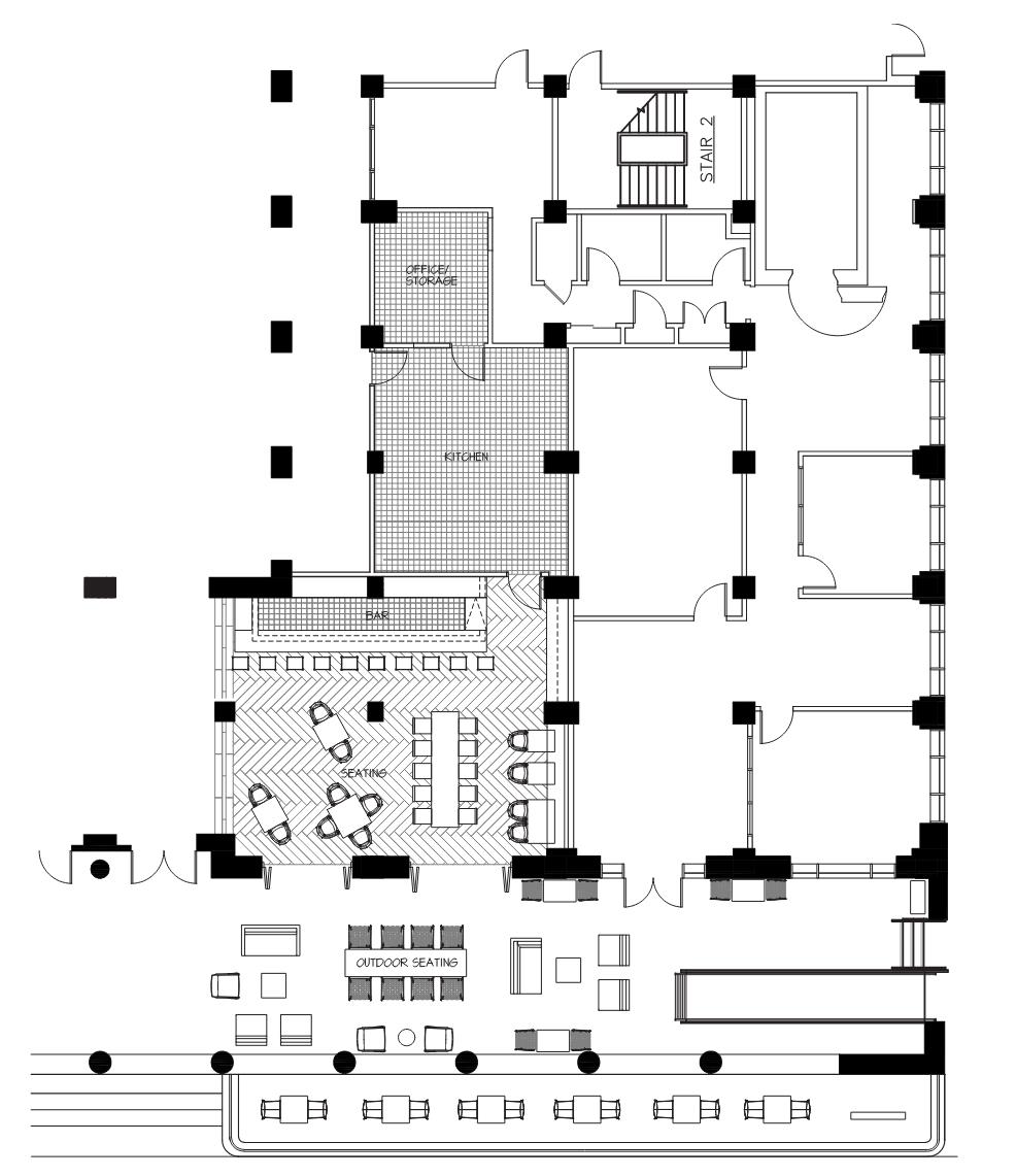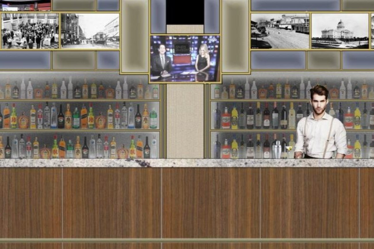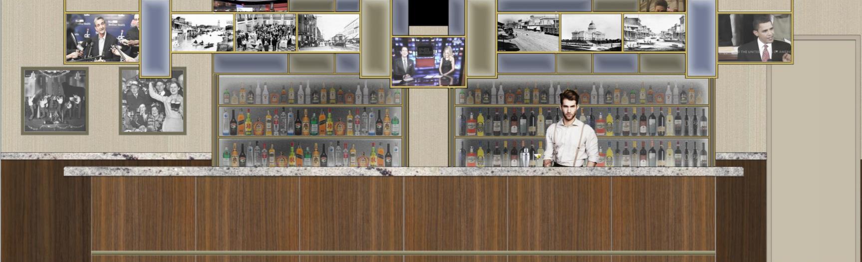 The former Senate building in Sacramento was renovated into offices. Our project was to create a restaurant space that would accommodate a daytime lunch crowd and would then transition to a nighttime bar venue for the businesses and lobbyists who haunt the nearby State capital. The bar is conveniently located across the street from the state capital in Sacramento. The design of the bar includes space that expands out the patio and the outdoor space at the front of the building to connect to the street and downtown walking traffic