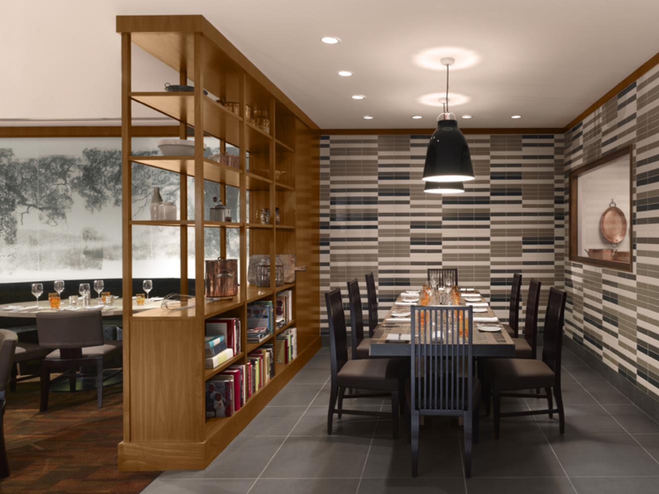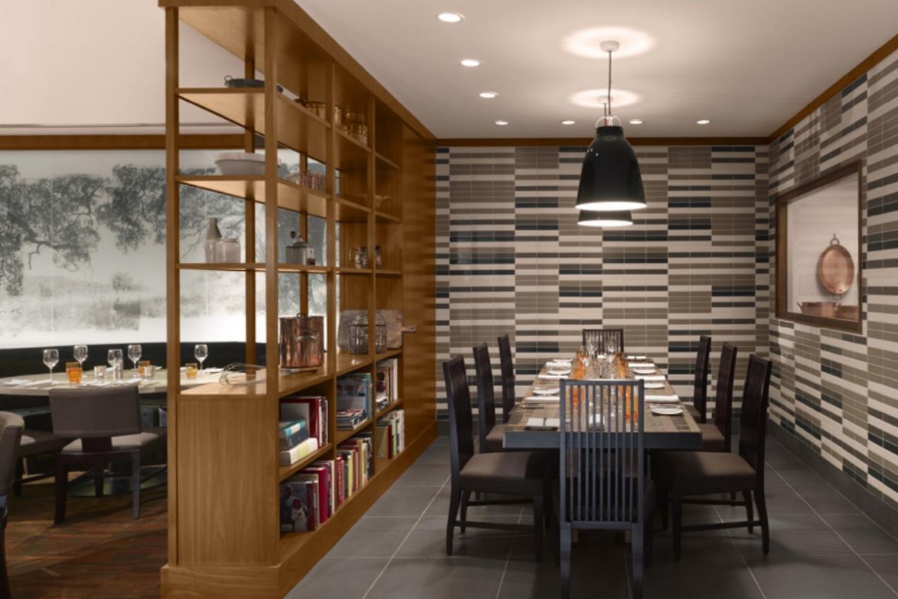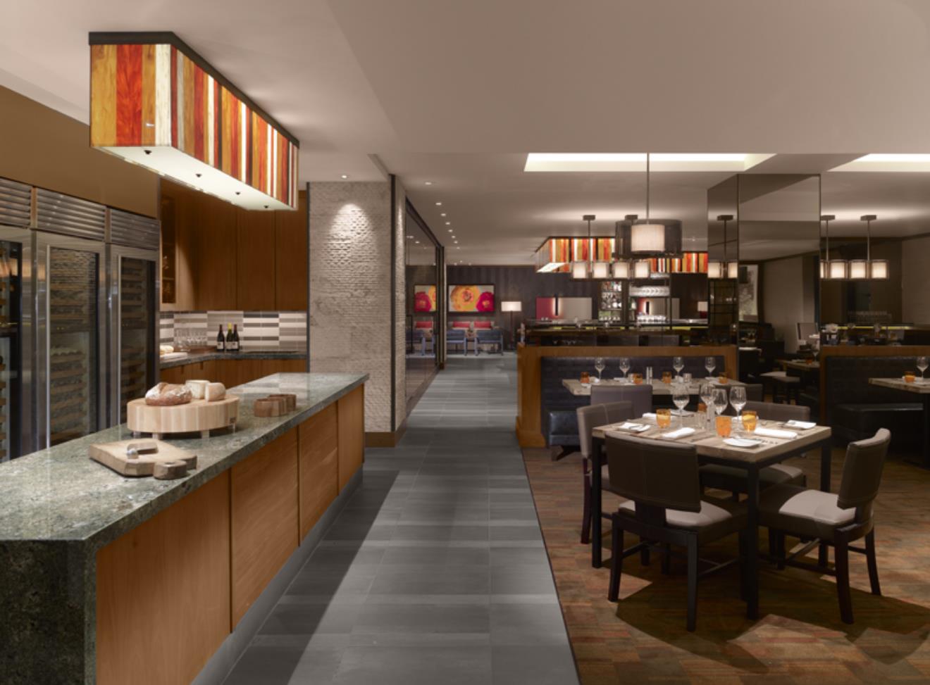 This project renovated two (Restuarant and Lounge Renovation) of the dining venues in the hotel. We replaced the existing traditional hotel restaurant with a more contemporary casual dining experience. We reimagined the dining experience to reflect a look and feel inspired by Northern California’s rolling hills by the use of material, colors and art. The upgrade included dividing the restaurant into a bar and lounge section next to the dining area with a chef’s table for parties and special events.
